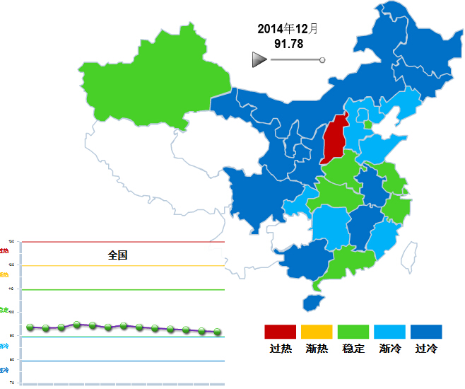 2013年11月至2014年12月,中轻皮革景气指数基本稳定,在90~100间小幅波动,处于稳定提示区的下半区运行。12月中轻皮革景气指数略低于11月(参见图3)。