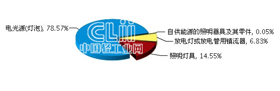 从进口子行业分类来看,电光源(灯泡)累计进口额占78.57%;照明灯具完成累计进口额占14.55%;放电灯或放电管用镇流器累计进口额占6.83%;自供能源的照明器具及其零件累计进口额占0.05%。