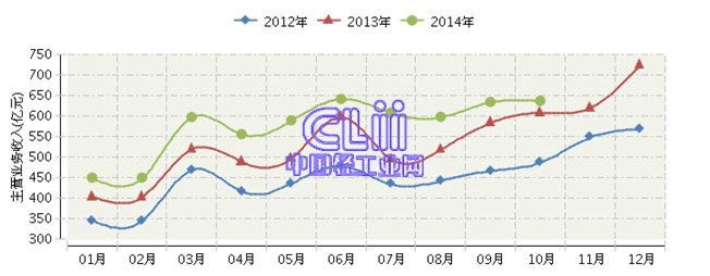 根据国家统计局数据显示,2014年1~10月,家具行业规模以上企业(下同)的累计主营业务收入同比增长11.55%,比轻工全行业的平均增速高了2.25个百分点。月度主营业务收入的运行轨迹与往年大致相似,但从8月起月度增速呈现大幅回落;尽管10月主营业务收入比9月增加了2.75亿元,增速却降为了3.55%(图2和图3)。