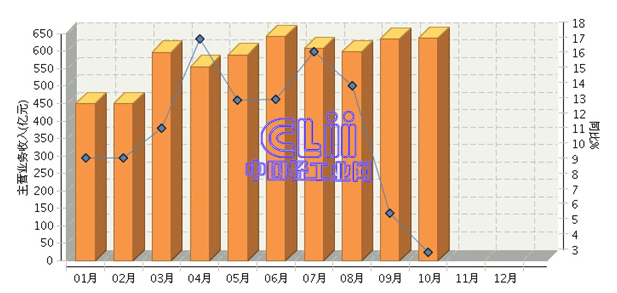 图3 2014年1~10月家具行业规模以上企业月度主营业务收入及增速