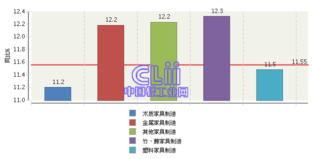 图5 2014年1~10月家具子行业规模以上企业累计主营业务收入增速情况