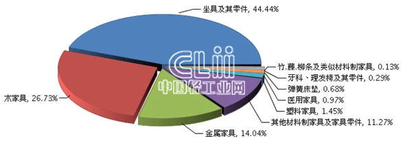 图4 2014年1~10月年家具行业主要商品累计出口值占比情况