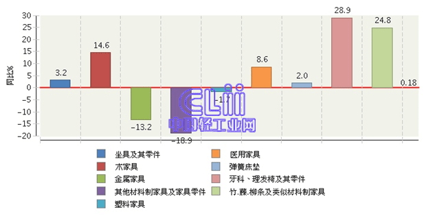 图5 2014年1~10月家具行业主要商品累计出口值增速情况