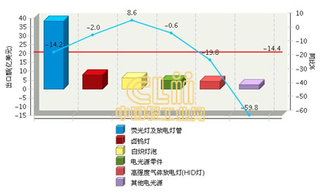 2014年全国电光源(灯泡)累计出口额子行业同比情况