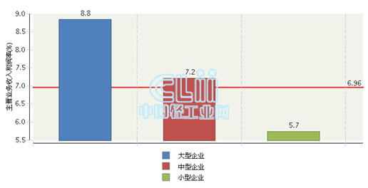 按企业规模来看,大型企业累计主营业务收入利润率为8.84%,中型企业累计主营业务收入利润率为7.21%,小型企业累计主营业务收入利润率为5.73%。