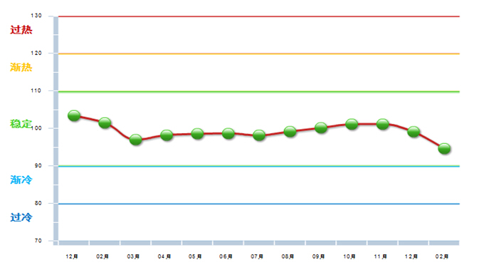 图2 2013.12—2015.2自行车行业景气指数变化态势