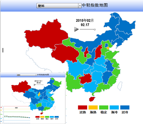 2015年2月塑料制品行业景气指数地图(左下小图为2014年12月情况)