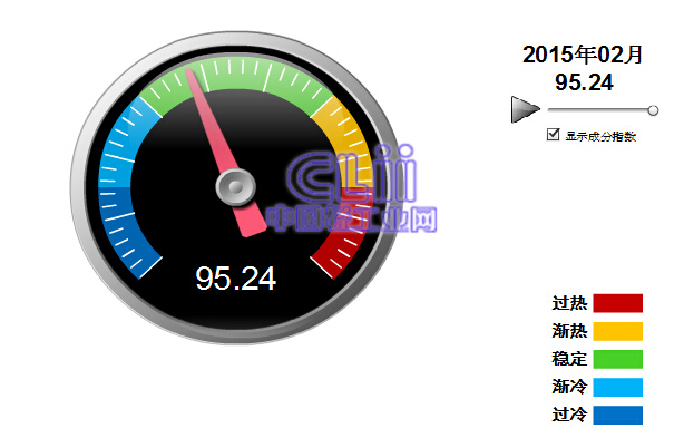 2015年2月中轻玩具经济运行指数为95.24,与去年同期相比下降了5.37个百分点,较去年12月份下降了0.36个百分点(参见图1-1)。
