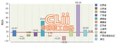 从同比增速看,广西、湖南同比增速在30%以上,领先于其他陶瓷主要产区;而江苏、山东、上海则出现0.20%、0.25%、8.81%的负增长。
