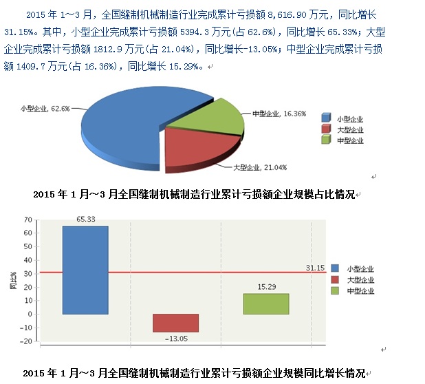 2015年3月全国缝制机械制造行业小型企业累计亏损额增速最快