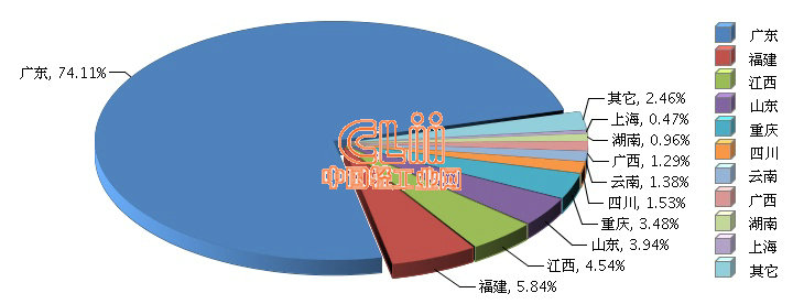 我国陶瓷砖出口额七成以上由广东完成。据海关数据显示,2015年1~3月广东累计出口陶瓷砖15.46亿美元,同比增长25.99%,占我国陶瓷砖出口总额74.11%,与上年同期相比,占比下降了5.69个百分点,详见图1。