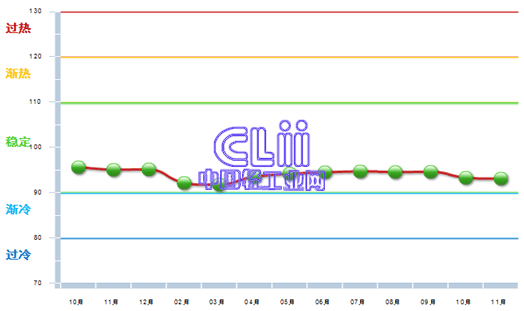 图2 2013年10月~2014年11月中轻家具行业景气指数变化态势