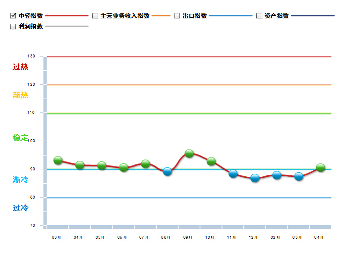 图2 2014年3月~2015年4月中轻饮料景气指数变化态势