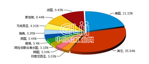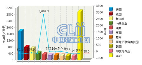 2015年1~3月,四川照明灯具累计出口额8274.26万美元,同比增长38.01%。比重主要集中在美国、法国、新加坡、马来西亚、瑞典等地区。其中:美国完成累计出口额1765.03万美元(占21.33%),同比增长50.09%。