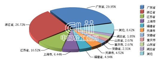 2015年1~4月,全国照明行业完成累计亏损额9.26亿元,同比增长19.14%。比重主要集中在广东、浙江、江苏、上海、福建等地区。其中:广东省完成累计亏损额2.77亿元(占29.95%),同比增长45.72%。