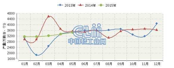 - 2015年1~5月江苏电光源行业累计产量2015/6/25 11:35:48