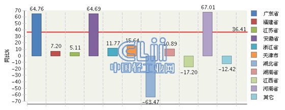 2015年1月~4月全国发光二极管(LED)行业累计产量主要地区同比增长情况