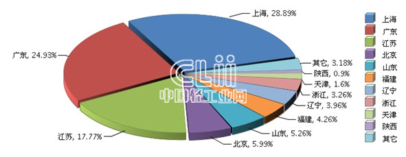 2015年一季度,全国照明灯具行业完成累计进口额1.16亿美元,同比增长6.71%。比重主要集中在上海、广东、江苏、北京、山东等地区。其中:上海累计进口额0.33亿美元(占28.89%),同比增长5.38%;广东完成累计进口额0.29亿美元(占24.93%),同比增长5.5%。