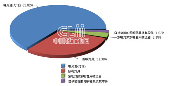 2015年1月~3月全国照明行业累计进口额子行业占比情况