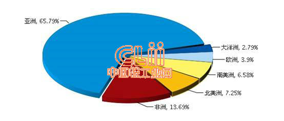 图1 2015年1~6月我国陶瓷砖累计出口额各大洲占比情况