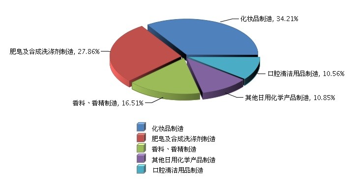 图 2015年上半年全国日化行业累计利润总额行业小类占比情况