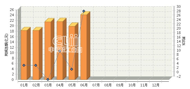 2015年上半年全国照明行业月度利润总额及同比