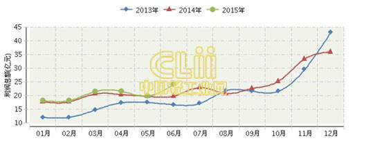 2015年全国照明行业连续三年月度利润总额对比