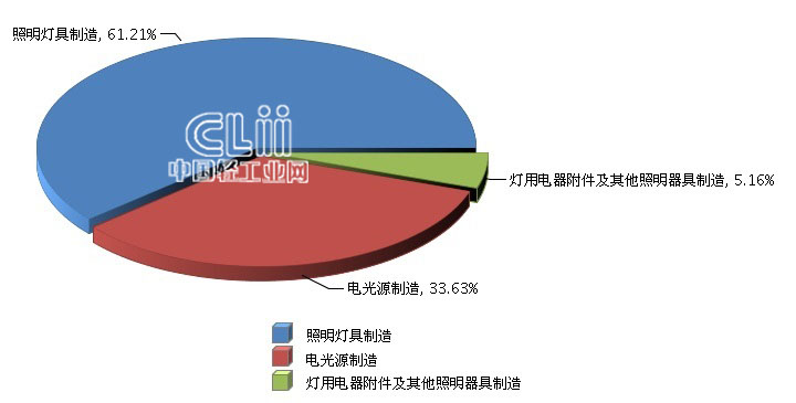 2015年上半年全国照明行业累计利润总额行业小类占比情况