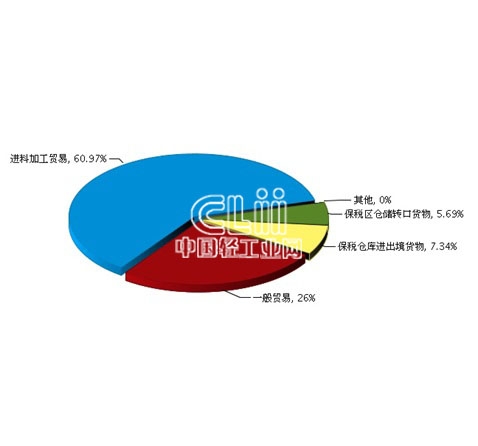 2015年1~6月全国卤钨灯行业对日本累计出口额贸易方式占比情况
