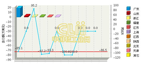 2015年1月~6月,全国照明灯具行业对圣卢西亚完成累计出口额21.19万美元,同比增长-86.54%。比重主要集中在广东、山东、浙江、福建、江苏等地区。其中:广东完成累计出口额18.6万美元(占87.8%),同比增长-85.11%。