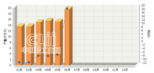2015年上半年,全国电光源完成累计产量93.36亿只,同比增长-1.47%。从月度产量增速看,除6月份外,上半年均为负增长。