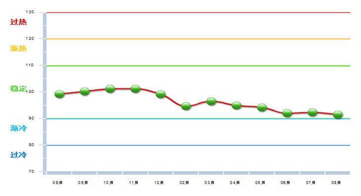 图2 2014.8—2015.8自行车行业景气指数变化态势