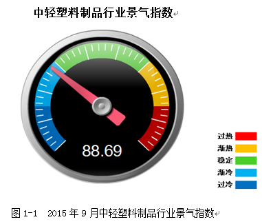 发布《2015年9月中国塑料制品行业经济运行简报》显示:2015年9月份中轻塑料景气指数为88.69,比上月回落0.21点。塑料景气指数连续7个月在渐冷区间运行。