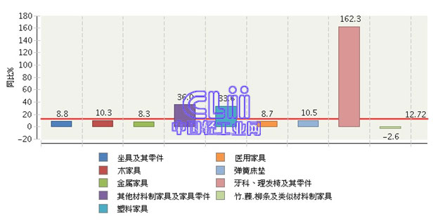 图5 2015年1~4月家具行业主要商品累计出口值增速情况