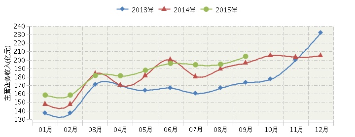 三季度日玻行业主营业务收入走势