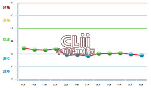 图2 2014年10月~2015年10月中轻照明行业景气指数变化态势