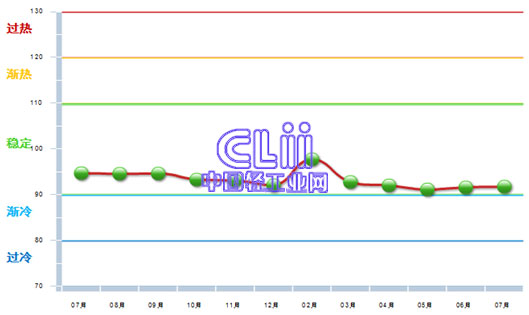 图2 2014年7月~2015年7月中轻家具行业景气指数变化态势