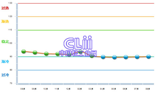 到2015年8月,家具行业主营业务收入景气指数已连续3个月在“渐冷”区间的上限附近微幅回升,当月环比7月提高了0.18个百分点(图1)。