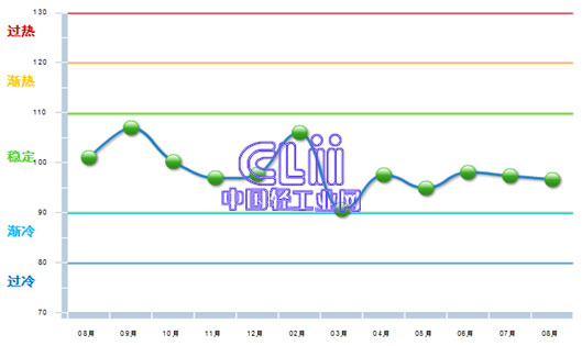 2015年8月,家具行业出口景气指数保持在“稳定”区间的100基准线以下运行,延续了7月下行的态势,当月环比7月下降了0.73个百分点(图1)。