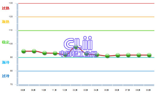 2015年9月中轻家具景气指数为91.72