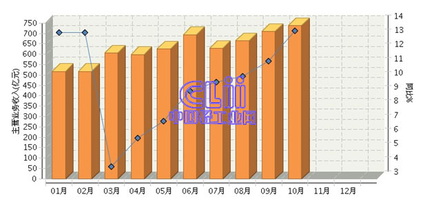 同期,前10个地区中,河南的累计主营业务收入(下称“累计增速”)达到了20%以上,安徽、福建及河南的累计增速超过了14%,山东、江苏、四川、广东及浙江5个地区呈现个位数增长,只有辽宁为两位数负增长(图7)。