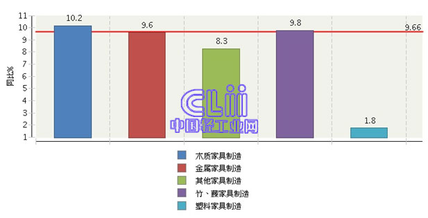 图5 2015年1~10月家具子行业规模以上企业累计主营业务收入增速情况