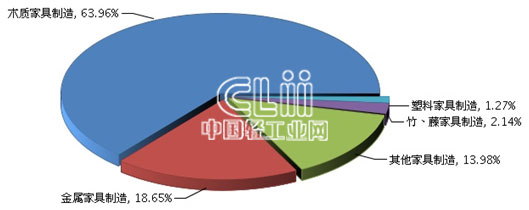 图4 2015年1~11月家具子行业规模以上企业累计主营业务收入占比情况