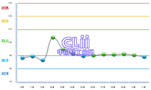 图1 2014年10月~2015年11月家具行业利润景气指数变化态势