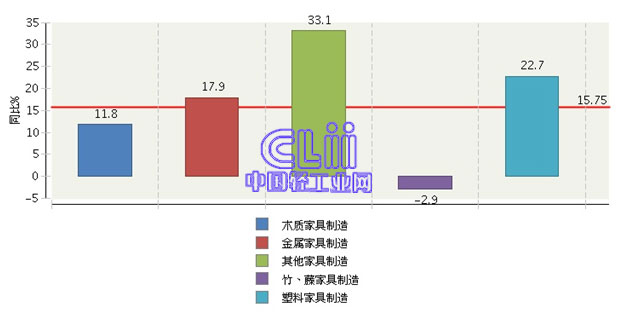 图5 2015年1~11月家具子行业规模以上企业累计利润总额增速情况