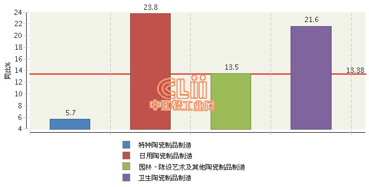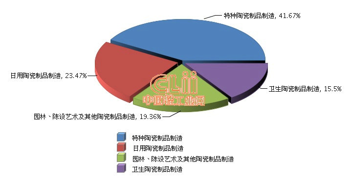据国家统计局数据显示,2016年1~3月,全国特种陶瓷制品制造完成累计利润总额同比增长5.68%,占全国陶瓷行业利润总额(下同)的41.67%),;日用陶瓷同比增长23.78%,占23.47%;园林、陈设艺术及其他陶瓷同比增长13.47%,占19.36%;卫生陶瓷同比增长21.6%,占15.5%。