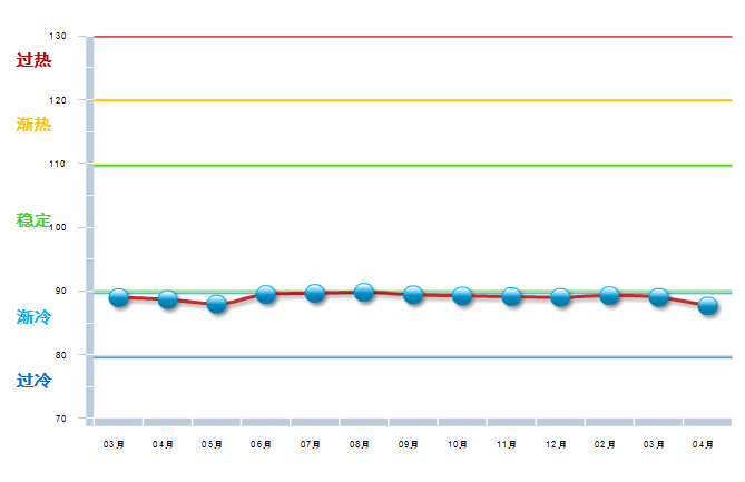 2015年3月至2016年4月,中轻皮革景气指数基本稳定,在90附近小幅波动,处于稳定提示区的下半区运行,至4月已经在渐冷提示区运行14个月(参见图3)。