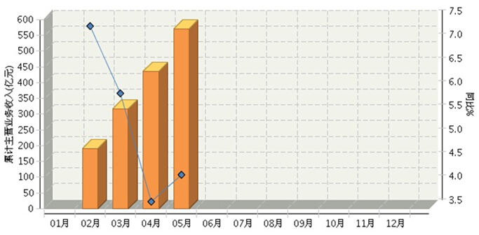 图1 2015.4—2016.5自行车行业主营业务收入景气指数变化态势 二、主营业务收入完成情况 2016年1月~5月,全国自行车制造行业累计完成主营业务收入569.9亿元,同比增长4.22%,比4月份略有回升。(参见图2) 图2 2016年全国自行车行业累计主营业务收入及同比 2016年1-5月份全国自行车行业下辖的两个子行业完成主营业务收入的状况是:脚踏自行车及残疾人座车制造行业累计完成主营业务收入248.65亿元,同比下降3.67%;助动自行车制造行业累计完成主营业务收入321.25亿元,同比增长11.28%。