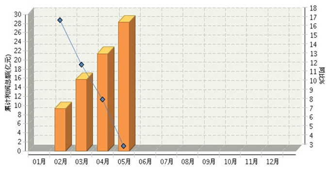 图1 2015.4—2016.5自行车行业利润景气指数变化态势 2016年1月~5月,全国自行车制造行业累计完成利润总额28.29亿元,同比增长3.57%,增速比上月再度放缓。(参见图2)。 图2 自行车行业月度累计利润总额走势图 从子行业分布情况看,电动自行车行业累计利润总额近19亿元,同比增长18.47%;脚踏自行车行业累计利润总额近10亿元,同比下降16.91%。
