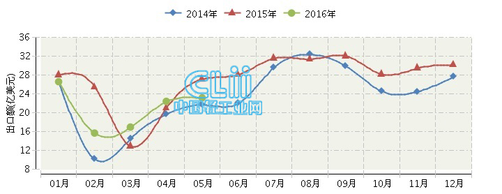 2016年1~5月,全国灯具及照明装置行业累计完成出口额104.60亿美元,同比增长-8.38%。其中:5月份完成出口额23.13亿美元,同比增长-13.59%。